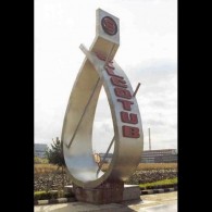 SILCOTUB: The 12 m tall giant obelisk made of the alluminum with the dimensional letters made of sheet, with the modeled neon tubes on the outline. The letters are arranged on both sides of the obelisk mounted on a pedestal made of the reinforced co