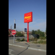 PENNY MARKET: Totem with the height of 7.5 m, illuminated from the inside, with polyploid faces decorated with sticker.