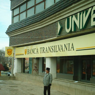 BANCA TRANSILVANIA: The outdoor signs type poliplan illuminated by the reflector. The advertise side is done in the form of a box made of cutted Dibond and the letters are made of cutted sitplex and they are attached on the front of the box.