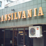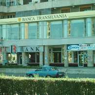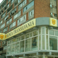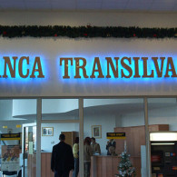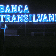 BANCA TRANSILVANIA: The large signs with the individual letters made of painted sheet with the shaped neon on the outline.