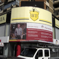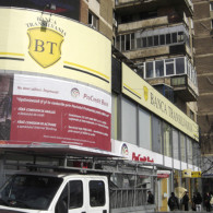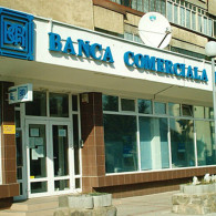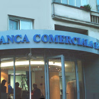 ROMANIAN COMMERCIAL BANK,:The logo and the letters are paneled, with the shaped neon tube inside the letters. The letters and logos are mounted on Alucobond.