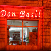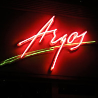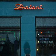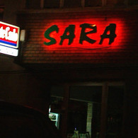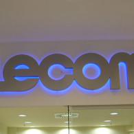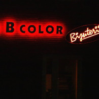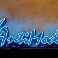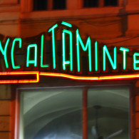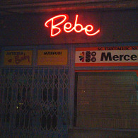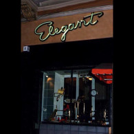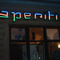 APERITIV: The tridimensional letters made of the painted galvanized sheet with the shaped neon tubes, in 3 colors, which are applied on the front of the letters.