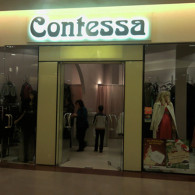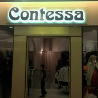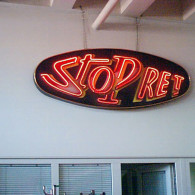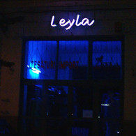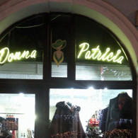 DONA PATRICIA: The letters of the shaped neon tube mounted on the komatex support; the figurative element made of the sticker.
