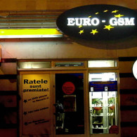 EURO - GSM: The box made of stiplex with the edge made of komatex with the three-dimensional letters applied to the face of the box.