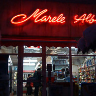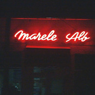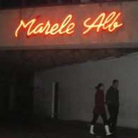 MARELE ALB: Tridimensiional letters made of the painted galvanized sheet with the neon tubes modeled in their midst.