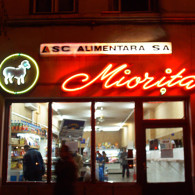 MIORITA: The letters made of the sheet with the shaped neon tube centrally located; the figurative sign made of the shaped neon tube; the light box with plexiglass face decorated with the stickers.