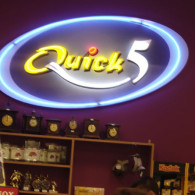 QUICK5: The interior signs made of the komatex support decorated with the stickers and with the shaped neon tube applied above ..