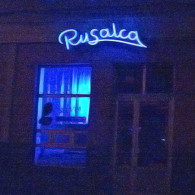 RUSALCA: The letters made of the painted galvanized sheet with the neon tubes modeled in their midst.