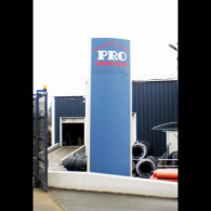 TOYOTA: The signs realized in the form of a cassette (box) of cutted Dibond. The letters are made of cutted Stiplex and they are attached on the front of the box. Pro Auto with the halo effect.