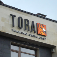 TORA: The logo with the Plexiglas face decorated with the sticker is lighted from the inside, the individual letters with the halo illumination type.