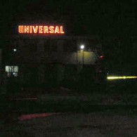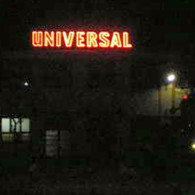 UNIVERSAL: The outdoor signs made of the galvanized sheet painted letters with the neon tube shaped on the outline of the letters.